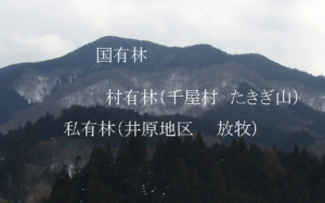 たくさんの話を、地区の方の家の縁側でお聞きした。寒い中、ありがとうございました。 この方は、写真が趣味との事。作品を見せてくださいとお願いすると、「私のは、写真を撮りに行くのではなく、シャッターを押しに行くだけ!」 ![]() 井原地区の向かいの山 村有林は、昔は雑木林だった。 私有林は、植林される前は放牧地で木はなかった。毎年、山焼きをした。 山火事になるでしょうと聞くと、そこが腕の見せ所。3mの防火地帯を作っておき上から順々に焼くんだよ、とのこと。) ![]() 井原地区の広い谷、田 2)市場地区での聞き取り @太田辰五郎の屋敷は、石垣、堀が残っている。 A市場から東に入る大きな谷全体を実谷(さねたに)と言う。実谷の支谷に「空原(からはら)」、「にかしょ」があり、たたらに関係している。 特に、「にかしょ」では、たたら製鉄がおこなわれており、金糞が散在している。 B市場地区には「村下師」、「鍛冶師」を屋号にしている家がある。 C金屋子神関係では、「あたごさん」と呼んで、山の上に火の神を祭っている。(市場から、祠が見える。) D「いおさやま」という名称は、聞いたことがある。場所特定できない。 E千屋地区では、田はさほど広くはないが食べるのには困らない程度の広さ(4〜7反)を持ち、そのほかに「たたら、カンナ稼ぎ」、「林業」、「牛放牧」で稼いでいた。 市場にある、橋(たむら橋)の上で長くお話を伺った。市場は、川筋の両側に連なる市街地といえるほどの集落である。昭和40年代まで映画館、パチンコ屋もあったとのこと。今も、商家風の家の連なりに往時の隆盛をしのばせる。 (08.3.1)(08.5.27)(08.6.9) |