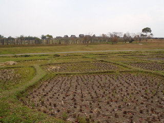 2013年03月22日 吉備/作山古墳 2013年3月22日 岡山県総社市にある作山(つくりやま)古墳(286m)を訪ねた。 日本で9番目、岡山県では造山(つくりやま)古墳(360m)に次ぐ2番目に大きな古墳である。築造は、5世紀頃で石室を荒された形跡がなく、まだ内部に埋葬されたままだと考えられている。 作山古墳(総社市ホームページ) 作山古墳遠望 作山古墳測量図 作山古墳後円部 3段になっている 作山古墳後円部 平らな墳頂 作山古墳 後円部から方形部を見る 作山古墳から、備中国分寺を臨む。 to top posted by tamatama at 17:45| 遺跡巡り/歴史探訪 2012年04月14日 備中国分寺/造山古墳 2012年4月12日 天気がよいので、岡山県総社市の吉備路/備中国分寺と造山古墳を訪ねた。ロードバイク。 12時、国分寺駐車場到着。コンビ二弁当を食べて、出発。 すっかり春らしくなり、風が心地よい。 備中国分寺 その1 備中国分寺 その2 菜の花との組み合わせはこの季節の定番! 造山古墳へ。 墳長350mの全国4番目に大きい古墳。 造山古墳後円部 吉備路サイクリングコースから見た造山古墳。古墳らしく見えない。 何とか古墳の全体を見ようと、榊山古墳(造山第1号墳)に登ってみた。 下の写真の通り、やはり前方部が小山のように見えただけだった。 造山古墳 前方部 前方部から古墳上部に登ることができる。前方部の上には、神社がある。 神社 後円部上部から見た前方部 ここで、古墳の大きさ実感。 後円部上部 平たく開削されて広場のようになっている。戦国時代、秀吉の毛利攻めの際、ここに陣取った毛利方が陣を張るため削ったらしい。 後円部から見た、広い吉備の平野 造山古墳を降りて、陪塚、千足装飾古墳(造山第5号墳)ヘ行ってみることにした。2009年、玄室の直弧紋の剥落が見つかり、2011年12月、この石材を外部に取り出した。 千足装飾古墳(造山第5号墳) 造山第3号墳 3時、吉備路を後にした。 アウトバックの荷台に積んだバイク −−−−−−−−−−−−−−−−−−−−−−−−− (参考) 岡山大学文学部 考古学研究室 to top posted by tamatama at 15:57| 遺跡巡り/歴史探訪 2012年02月28日 出雲/歴史探訪の旅 2012年2月26、27日 <1日目> 11時、妻木晩田(むきばんだ)遺跡に到着。 丘陵。鳥取県西伯郡大山町、大山のふもと。 「弥生の館 むきばんだ」見学。弥生時代の人々の暮らしがよくわかる展示だった。 竪穴住居、高床倉庫を復元した住居跡訪問。ここには、約2000年〜1700年前の900棟もの住居・建物跡、30基以上の墳丘墓跡があり、当時、有力なムラであったと考えられている。 貫頭衣 14時、「八雲立つ風土記の丘」へ移動。一転して、古墳時代から奈良時代の遺跡。島根県松江市。 「八雲立つ風土記の丘展示学習館」見学。今回の旅のテーマは「古事記」、「風土記」の世界を訪ねることだった。ここで「クニ引き神話」展示を見たり、屋外の「岡田山1号古墳」を訪ねるうちに、次第にその世界を身近に感じるようになった。 岡田山1号墳 内部の石室を見ることができた。 16時、島根県最大の古墳「山代二子塚古墳」を訪問。 「ガイダンス山代の郷」見学。展示パネルを見た後、古墳を見た。古墳の上に子供が登って遊んでいた。ここでは、古墳の断面が見ることができる。石室が、あることはわかっているが、まだ調査されていない。 17時を過ぎて、出雲市内のビジネスホテルに向かった。 −−−−−−−−−−−−−−−−−−−−−−−−−−− <2日目> 9時、西谷墳墓群を訪問。丘陵。 弥生時代の終わりから古墳時代にかけて500年間にわたって墓地であった遺跡である。ここでは、「四隅突出型墳丘墓」を詳しく知った。 出雲弥生の森博物館見学。2010年に開館した新しい博物館で、これまでの研究成果を踏まえ作成された、墳丘墓上での祭祀再現のジオラマは圧巻であった。 歩いて10分くらいで、整備復元された四隅突出型墳丘墓を見ることができる。これまで、10m四方くらいのものだと勝手に思い込んでいたが、実際は50m四方のものもあり、かなり大きいものだった。力を誇示するにふさわしい大きさであった。 西谷2号墓 約46m×約29m 13時、出雲大社に隣接する、出雲古代歴史博物館へ移動。 出雲大社、風土記に関連する展示を中心に見た。神話シアターで、古事記の20分のビデオを見た。途中で眠ってしまい、気がついたらビデオが終わっていた。昨日からずっと歩き詰めで、少々疲れがたまっている。 16時、出雲大社訪問。 宝物館を見学、そのあと60年に一度という出雲大社本殿の大修理を見学した。ほぼ、本殿修理は終わり、この後本殿を覆っていた工事用建屋を解体する予定。足場を利用して、檜で新たに葺かれた屋根を間近に見ることができた。 出雲大社 手前は「御仮殿」後ろに本殿を覆う工事用建屋。 17時、帰途についた。 to top posted by tamatama at 15:30| 遺跡巡り/歴史探訪 2011年12月09日 佐賀/吉野ヶ里遺跡訪問 2011年12月7日 朝早く自宅を出て、9時に吉野ヶ里歴史公園に到着。 歴史公園センター ビデオ。展示。 ↓ 環濠 逆茂木 ↓ 展示室 出土品を展示し