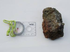 新見市 芋原地区 現地訪問 (08.4.30訪問) 天銀山南側に芋原地区がある。阿哲郡誌には「竪金山(芋原)」に鑪場あるいは鍛冶所があったとの記述あり。吉川地区には、以前訪問した金くそ散在地がある。芋原で本当にたたら製鉄がおこなわれていたのか知るために現地訪問し、お話を伺った。 金くそ散在地が一箇所、見つかった。 芋原地区では、突然の訪問にもかかわらず、長時間お話を聞かせてくださった上に、金くそ散在地まで案内して頂いた。 (聞き取り内容) (かんな流しについて) 1)この地区で、鉄穴流しを行っていたかどうかは知らない。鉄穴流しの話は聞かない。 2)小学生の頃に、伯耆の国へ行ったときに「木の樋」に水を流していたのを見たことがある。巾20cmくらいの樋だった。何をしているのか子供心に不思議に思って聞くと、砂鉄を取っているとの事だった。子供の頃のことでそれ以上は覚えていない。(大倉山ふもとの神戸上地区のようだ。大正の終わり、昭和初めの頃鉄穴流しをやっていたのだろうか。TKN) 3)吉川上流の溜池は、鉄穴流し用の貯水池ではない。純粋に、農業用水確保のために作った池である。(これを聞いて、池の調査中止。) (たたら製鉄について) 4)金くそは、家の前の川の中にたくさんある。谷の奥に「かじやだ」と名前のついた田が5枚あって、その場所にその昔「たたら集落」があったと聞いている。 5)谷の奥には、堤(貯水池)がある。(未確認) 6)吉川のたたら場(以前に訪問したところ)は、このあたりでは規模の大きいものと思う。 (そのほか、芋原地区のこと、街道のことなど) 7)芋原地区は、江戸期より「伯耆街道」(伯耆往来)の宿場として栄えたところだ。遊郭もあったと聞いている。 8)石の馬頭観音(高さ40cm)がある。安政5年の文字が見える。:安政5年は1858年。 9)芋原には今も昔の街道が残っている。「あかさかみち」と呼んでいる。昔の街道筋は、今の道路とは違った場所、山の中腹を通っており、山に入ると街道の跡を、かなりの距離追っていける。茶店のあった場所が残っている。 (すぐ近くに巾5〜60cmくらいの少しくぼんだ山道が数m残っていた。人がやっと通れる程の巾しかない。山の中を、荷物を背負って歩くのは、並大抵ではなかったろう。・・・・・・街道と言っても、一歩宿場を離れると山道で肩にあたる小枝を払いながら進んでいくのが現実だ。) このあと、金くそがあると言う場所へ案内してもらった。(なしの木が数本。白い花がきれいだった。) 川の中に金くそが転がっている。大きさ20〜30cm。 今は作っていない田のあぜに、金くそが数多く転がっていた。5〜20cm。粘土状の土がついた金くそ、粘土のつかない金くその2種類あり。 ![]() 金くそ (田のあぜで拾ったもの、片側に土がついている) −−−−−−−−−−−−−−−−−−−−−−−−−−−−−−−−−−−−−−−− 高梁川沿いの谷内(たにうち)から、木戸、芋原を通り、天銀山と三井山の間の峠を越えて三坂まで行く山道が、その昔、「鉄の道」だった。 次回は、山の中に残るという「伯耆街道」跡をトレースして歩く予定。 (08.5.3 記) |