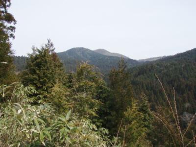 途中これから登るマッコウが見える。奥に見えるのが山頂(1115m)。