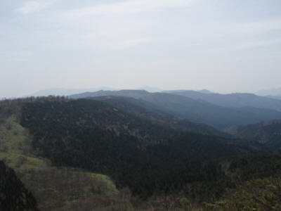 県境1100mピークからは南東へ県境尾根筋を忠実にたどる。