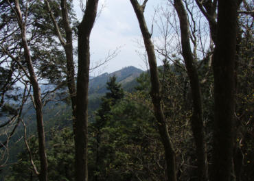 下山中、振り返ると大釈山山頂がかろうじて見えた。