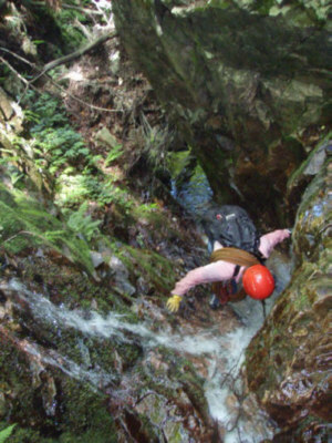 1m幅の狭い沢を抜けた所で 5m滝を登る