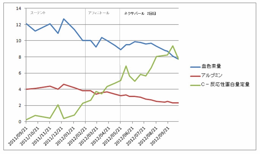 1)ネクサバール継続 → 8、9月の数値悪化傾向が継続している。希望がない。