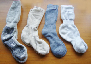 登山用靴下(右2つが千円、左2つは二千円、右2つを日常的に使用)