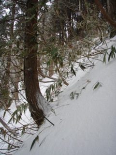 以前は、こんな斜面もスノーシューで登った。