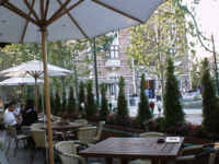 広場で写真を撮る家族や、通りを歩く男女を見ながら他愛もない話をして、時間をつぶす。外で食事もそろそろ寒くなってくるかな。 (97/9 レストラン イタリアンクッケン) |