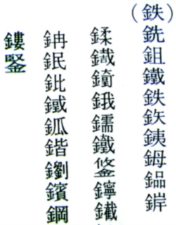 しかし、この鉄という漢字は中国の古文献を探すと、とても三つや四つではない。・・・・・・はっきりと鋼に相当するものでは『集韻』のル(ケン)」・・・・、があげられ、鉅(キョ)にも『荀子』や『史記』によると堅い鋭い鉄の意味がある。『説文』の金皆(カイ)にも良い堅い鉄の含みがある。」