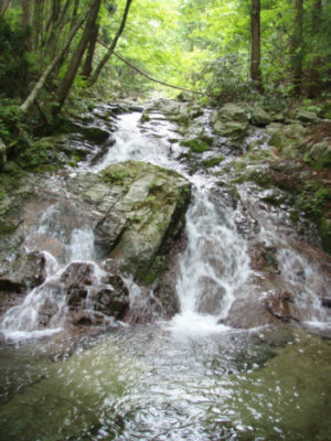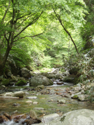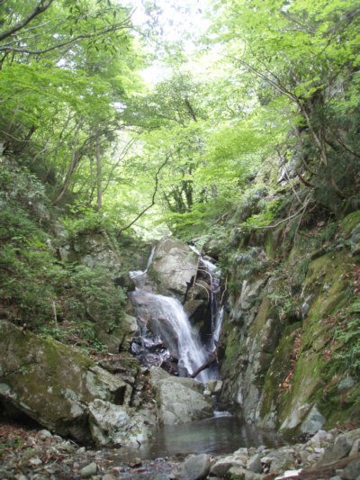 川に下りて少し上ると川出会いがあり、小滝のかかる右へ入る。