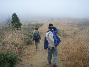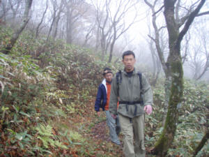 天気悪く、ガスで全く展望ないため御陵から引き返す案もあったが