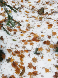 登山口で、うっすらと雪。中腹から10〜20cmの積雪あり。