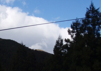 駐車位置からかすかに見える道後山山頂