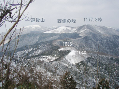 神郷三国山から見た1177.3峰 (08.1.4撮影)