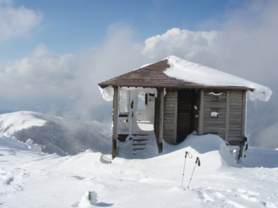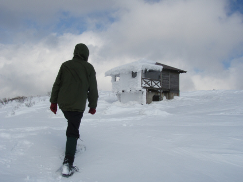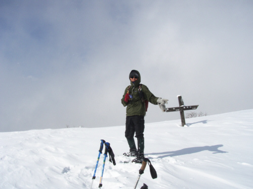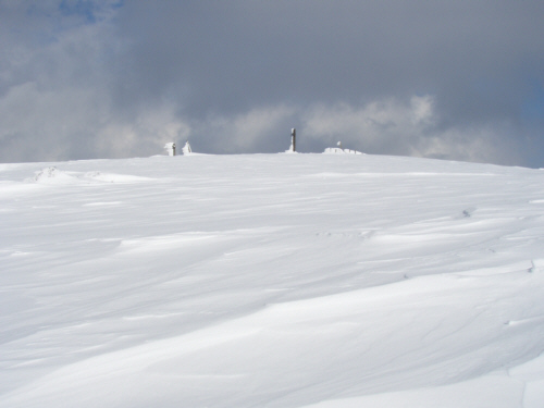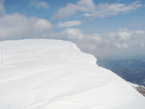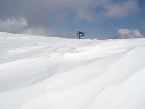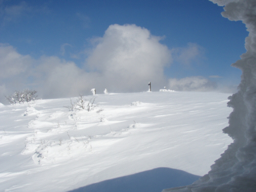 登山口では天気 まずまずであったが、三角点手前で地吹雪。