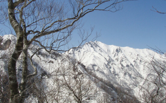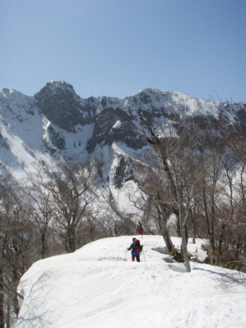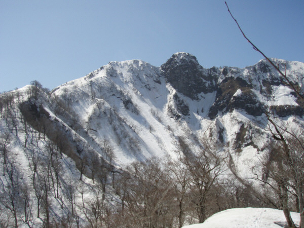 1230m峰の東南稜線に出ると突然、烏ケ山が間近に現れた。