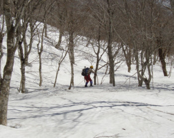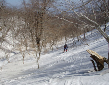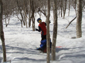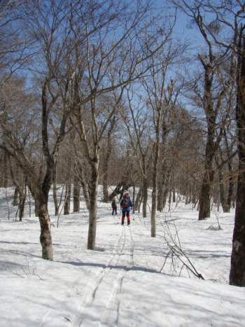 スキー板使用2回目。林の中をスキーで滑る初めての体験は、こけることも多かったが楽しかった。