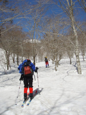 それぞれスキー板をはいて、烏ケ山 1230m峰を目指しスノウハイク。
