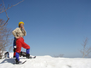 1230m峰へはスノウシューで15分。ここで、簡単な昼食。