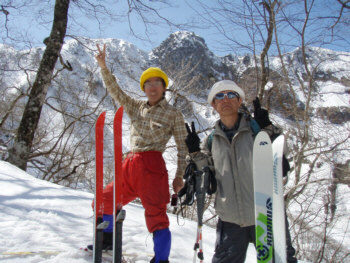 少し休憩の後、気合を入れて、スキー板で下り始める。