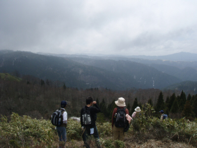 伯州山(1044.9m)からの展望。あいにくの天気。