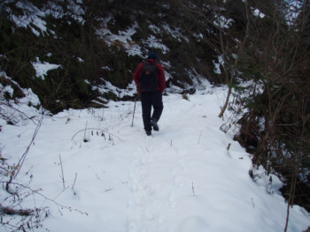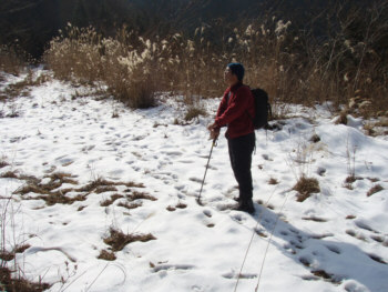 林道スノウハイクの予定だったが、年初降った雪はなくなっていた。