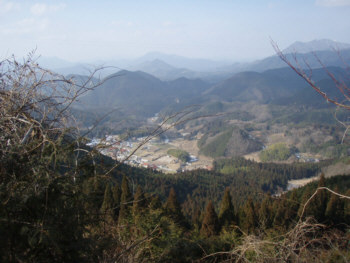 下に三坂の集落を見る。