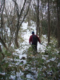 しばらく潅木ヤブが続くが、やがてささヤブの稜線歩き(尾根歩き)になる。
