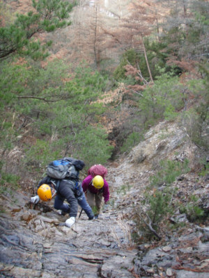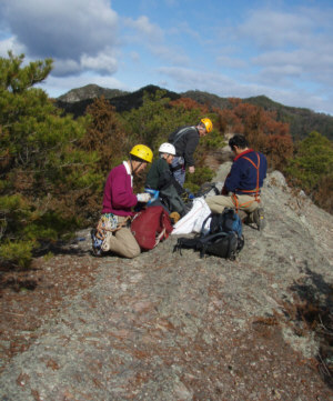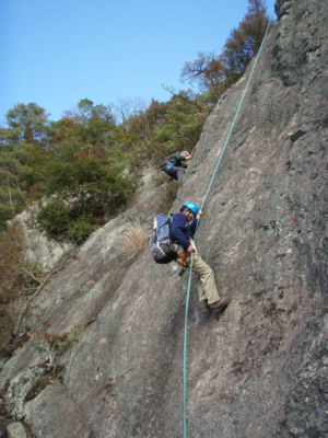 尾根で昼食。帰りは、藤本壁(とうごうへき)を懸垂下降。