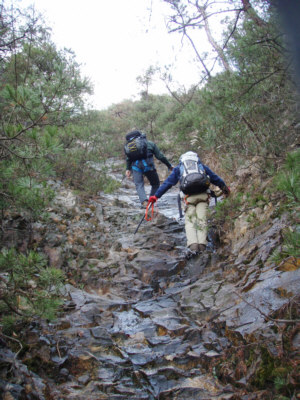 その後、険しい山道を駐車位置まで下った。