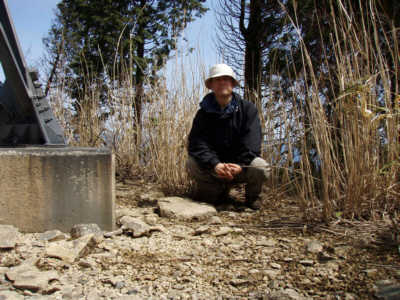 電波反射板のコンクリート足にカメラをおき記念撮影。