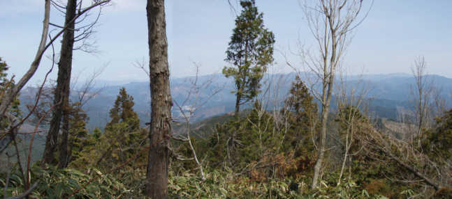 834m峰手前まで植林帯をえっちらと登り、そこからは熊笹。