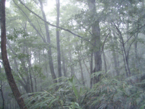 雨の中、もう少し上流に駐車し、沢登りの身支度をして