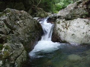 この後、林道を下り 天人淵の看板を目印に川のほうへ向かうと