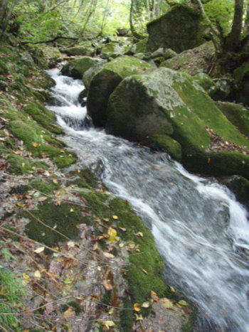 鱒返りの滝の上流から、川へ入る。
