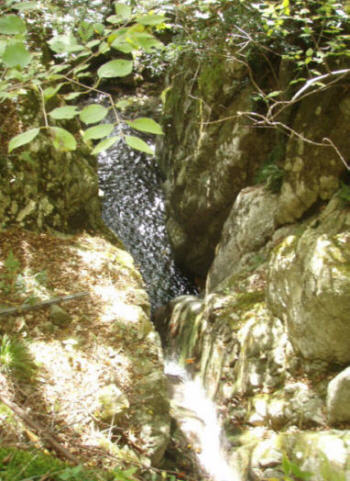 300mほど行ったところで、10mの滝に行く手をはばまれ、