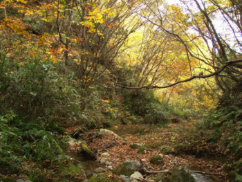 この写真でいえば左へ、方向は北向きに支流の沢を